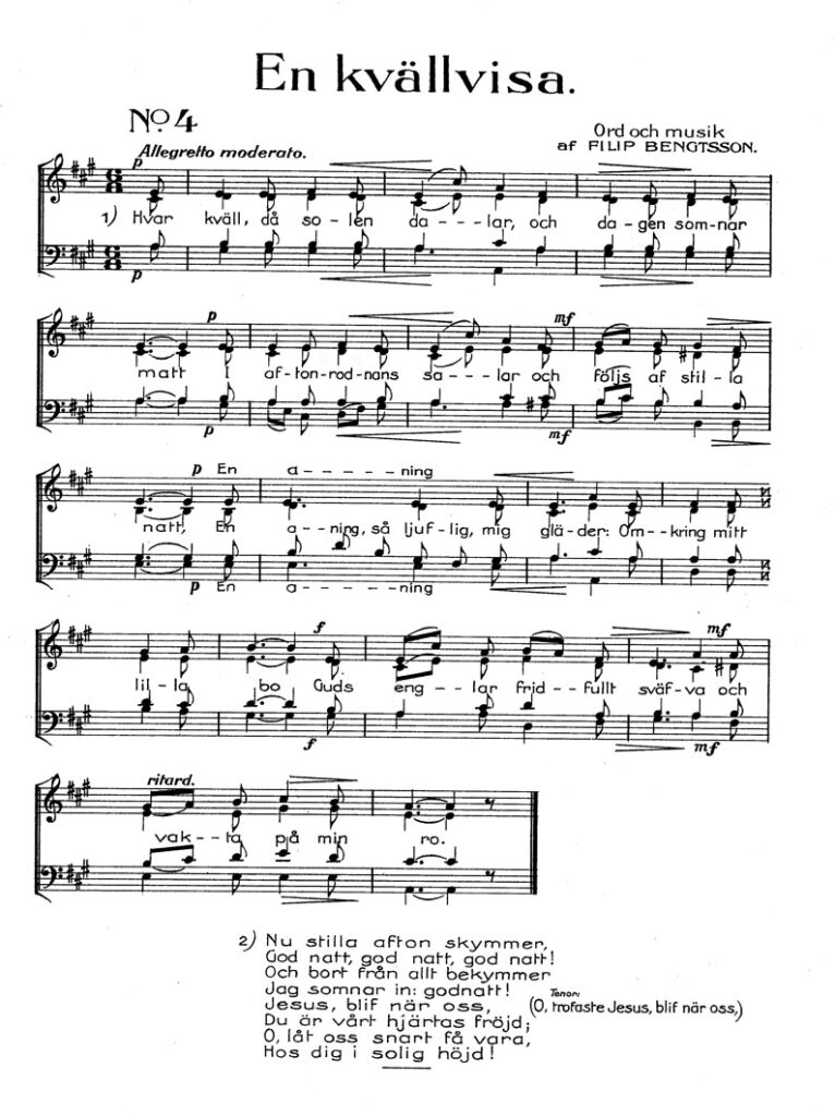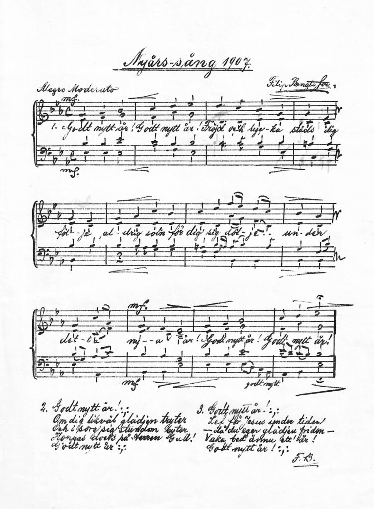 Några av Filip Bengtssons egna kompositioner fick plats bland tidskriften Sångens notbilagor. Andra publicerades på bland annat P Lindahls förlag i Eskilstuna. Några är inte publicerade – förrän nu, på denna webbplats.