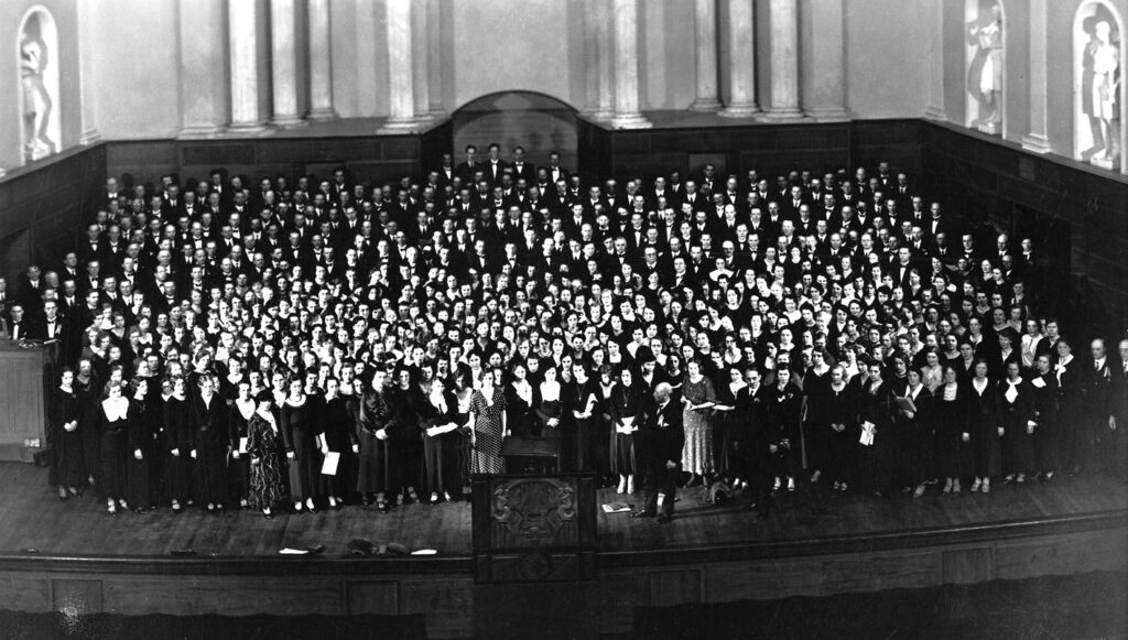 SBS sångarkonferens i Stockholm, maj 1935. Avslutningskonsert i Konserthuset, Stockholm, med fler än 1,000 sångare i förbundskören.